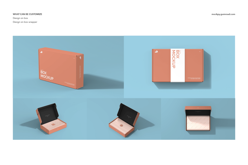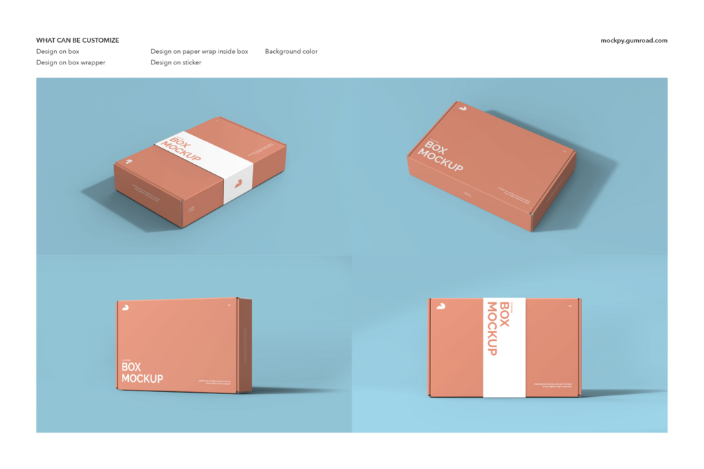 Whether you want to change the box wrapper or experiment with different sticker options, our mockup offers two types of stickers to choose from, enabling you to bring your creative vision to life.